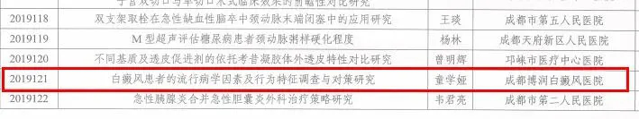 为推进白癜风这种疾病的早期诊断、精准诊疗以及有效的社会防控手段,成都博润申报的《白癜风患者的流行病学因素及行为特征调查与对策研究》科研课题在成都市卫健委审批下正式立项。